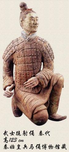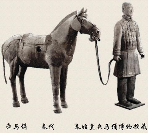 秦代的兵马俑,兵俑以及马俑,大小都与实物一样。比如兵俑的身高,矮的有1.68米,高的到1.87米,跟今天的人的身高几乎一致。只有秦代做了这样跟真人大小一致的兵马俑。而秦代之前的战国也有俑,后来的西汉、东汉都有俑,但一般情况下,俑都比较小,东汉最大的俑大概只有真人的二分之一大。