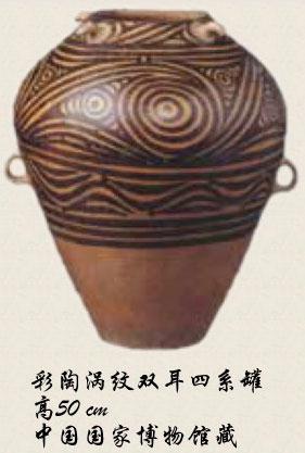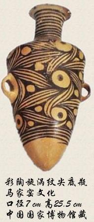 仰韶文化、马家窑文化、齐家文化、大汶口文化、龙山文化,都是黄河流域沿岸的文化;沿着长江流域的,主要是河姆渡文化和良渚文化。仰韶文化,有一个"人面鱼纹盆",非常有名。马家窑文化,著名的是"小口尖底瓶"。小口尖底瓶是一个提水的工具,它做得非常聪明,是尖底,为的是一旦进入水中,尖底瓶就会立刻翻个儿,水从它的口中流入;而当它装满水的时候,就立刻正起来了,这就是它的功能。五千年前的古人,已经开始用这么漂亮的东西来提水了。