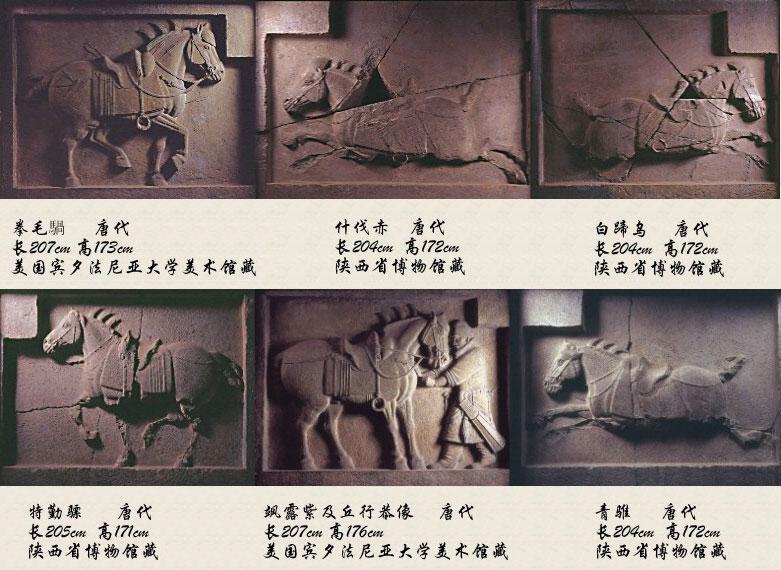 唐代人非常喜欢马。马在古代社会中,首先不是最重要的农业工具,而是最重要的军事工具。所以,马在古代是军事力量的体现。比如唐太宗的昭陵六骏,其中两骏在20世纪初被盗到美国去了,至今还在美国费城博物馆里展出。另外四骏已经被打碎了,准备运输出国时,被政府截住了,今天在陕西省博物馆展出。"六骏"是指拳毛騧(音瓜)、什伐赤、白蹄乌、特勤骠、飒露紫、青骓。特勤骠,有的书上也写作特勒骠。这六匹骏马是唐太宗最心爱的六匹马,都是战功卓著,最后做为浮雕在昭陵千年供奉,从唐代一直到民国初年。结果被破坏了,非常可惜。李世民本人骑术非常精湛,他认为马是甲兵之本,国之大用,就觉得马非常重要,相当于战车。一个强国的帝王,对军事就得非常重视,只有军事强才能国家强。