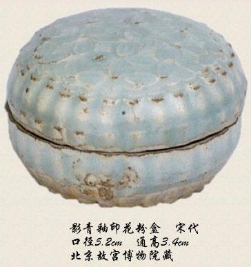 影青中有大量的粉盒。我们知道不是今天的人才化妆。我们中国历史上,从汉唐都很盛行化妆,宋代每个人都化妆。所以它有大量的粉盒出世,出土。我自己也收藏很多盒,大大小小的,影青的盒是最漂亮的。印花的有牡丹的、花卉的、花鸟的,什么素的,有的纹饰非常漂亮,有的瓷器盒仿得跟那个藤子编出来的似的。宋代人追求的生活的情趣比其它朝代更甚,就是宋代人特别注重生活的细节。我写过一篇文章,我都希望我生活在宋朝,看看宋朝人的那种细致。