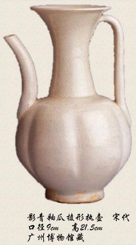由于景德镇瓷土的优良,韧性非常好,它可以不太费力地仿制金属器造型,所以早期很多影青跟金属器一样。比如执壶,一看就不是瓷器的造型,就是金属器的造型。如果我们的颜色变成铜那样子立刻就变成一把铜壶。它就是仿金属器,它优良的瓷土使它有条件做成这个样子。有的瓷土是不行的,你比如说磁州窑的瓷土都非常厚,都非常粗糙,你做成那个样子,它就做不成。就简单地说,丝绸是可以做一个衬衣的,你拿呢子做一个衬衣,它就做不成了,对不对?就算做成了你也穿不上,穿上也扎得慌。