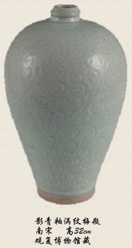 我的影青涡纹梅瓶是在香港买的。二十世纪八十年代,我去香港的时候看到这种东西就很激动,看到这种东西这么漂亮,过去只有在博物馆、在书上看到的东西居然今天可以买了,而且还不是很贵。因为景德镇的影青瓷出土的数量地非常大的--就是南宋的东西出土的量是非常大的。临安当时史书上有记载,杭州城里,就是作为南宋的都城里,有专门卖青白瓷的店铺。