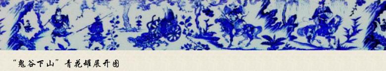 第一,是由题材决定的。瓷器题材很少有故事情节,过去中国人画画也很少画带有情节的画,都是《观瀑图》、《花鸟图》,不画情节。画出情节的画,都是国宝,如《清明上河图》、《韩熙载夜宴图》。"鬼谷下山"是著名的历史军事故事,说的是战国时期,诸侯纷起,涌现出很多著名的军事人物。王翊就是其中之一,他是军事奇才,号称"鬼谷子",大名鼎鼎的孙膑就是他的徒弟。当时燕国和齐国交战,孙膑是齐国这头儿的,被燕国俘虏了。齐国就求他的师父鬼谷子下山救徒。这青花罐画的就是鬼谷子下山的情景。