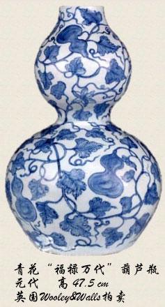 英国在2005年还有一个乡村有一个小的拍卖行,拍卖了一个震惊世界的元青花,非常有意思。这件东西,因为记录非常清晰,所以它后来被后人就津津乐道。有一个老头,他们家地上放着一个元青花的葫芦形的大瓶。他们家的狗天天从这瓶子面前走来走去,大尾巴在瓶子上扫来扫去,走来走去。后来来了一个行家说,你们家地上怎么有这么贵重的一件东西啊?老头说:是很贵重吗?在我们家摆了很久很久了。那么他说:我们能不能拿到拍卖行给你拍拍看,老头说行。就拿到拍卖行。这个瓶子当时拍了多少钱呢?因为它是在英国乡村很偏远的一个拍卖行。很多竞价者都没有到场,不知道。所以拍得不高。拍了多少钱呢?当时拍了折合人民币大约5000万块钱。据说,老头杵着这个手杖在门口领着他们家狗就看楞了。他没想他们家所有财产加起来都不顶这个搁在地上的瓶子值钱。然后就拍了拍很懂事的那条狗,那意思就是说,你这么走没把我这瓶子摔了真是万幸啊!