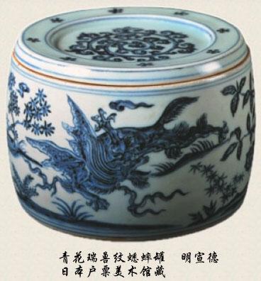 宣德青花蟋蟀罐的传世品非常罕见,过去见到时,还不知道是蟋蟀罐,全世界只有零星几个。据说宣德死后,他母亲张太后当场下令,把他所有玩儿的东西全砸了。明人李贤在《天顺日录》中有明确记载。台北"故宫"有1000多件宣德青花瓷器,是全世界收藏最多的地方,可一个蟋蟀罐都没有。所以,当时不能证明宣德有此爱好。