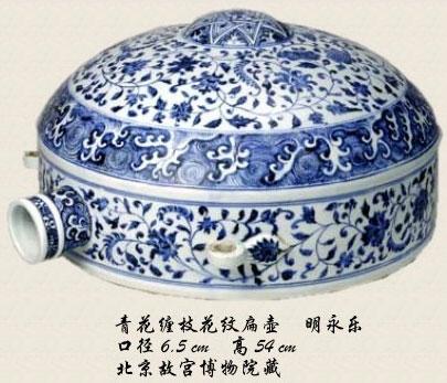郑和返程的时候,带回大量下西洋沿途看到的各种文化。这时,就可能把大批波斯纹样带入宫廷,用它来做样子,烧造瓷器。永乐时期,明朝与中东波斯的贸易,可能是导致永乐瓷器波斯器型、纹样众多的一个原因。比如扁壶、花浇,一看就不是中国人常用的东西,而是受波斯文化的影响。