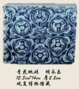 永乐为建报恩寺和报恩寺塔,所动用的材料是我们不能想像的--用青花做地砖。今天装修房子,买的所有瓷砖都是为家装烧造,没有人敢用青花瓷,成本巨大,不能承受。但永乐就烧了青花地砖,每块砖大概都有二三公分厚,非常漂亮。这种砖在过去很长一段时间不为人所知,每个人看到那砖的时候,都觉得那是一个残器,像一个盘子的中心被切下来了。砖上的图案也不完整,因为每块砖都是局部图案,只有拼接以后才能变成完整的图案。单看一块砖,往往就误认为是残器。古今中外,用青花作为地砖,目前已知的只此一例。